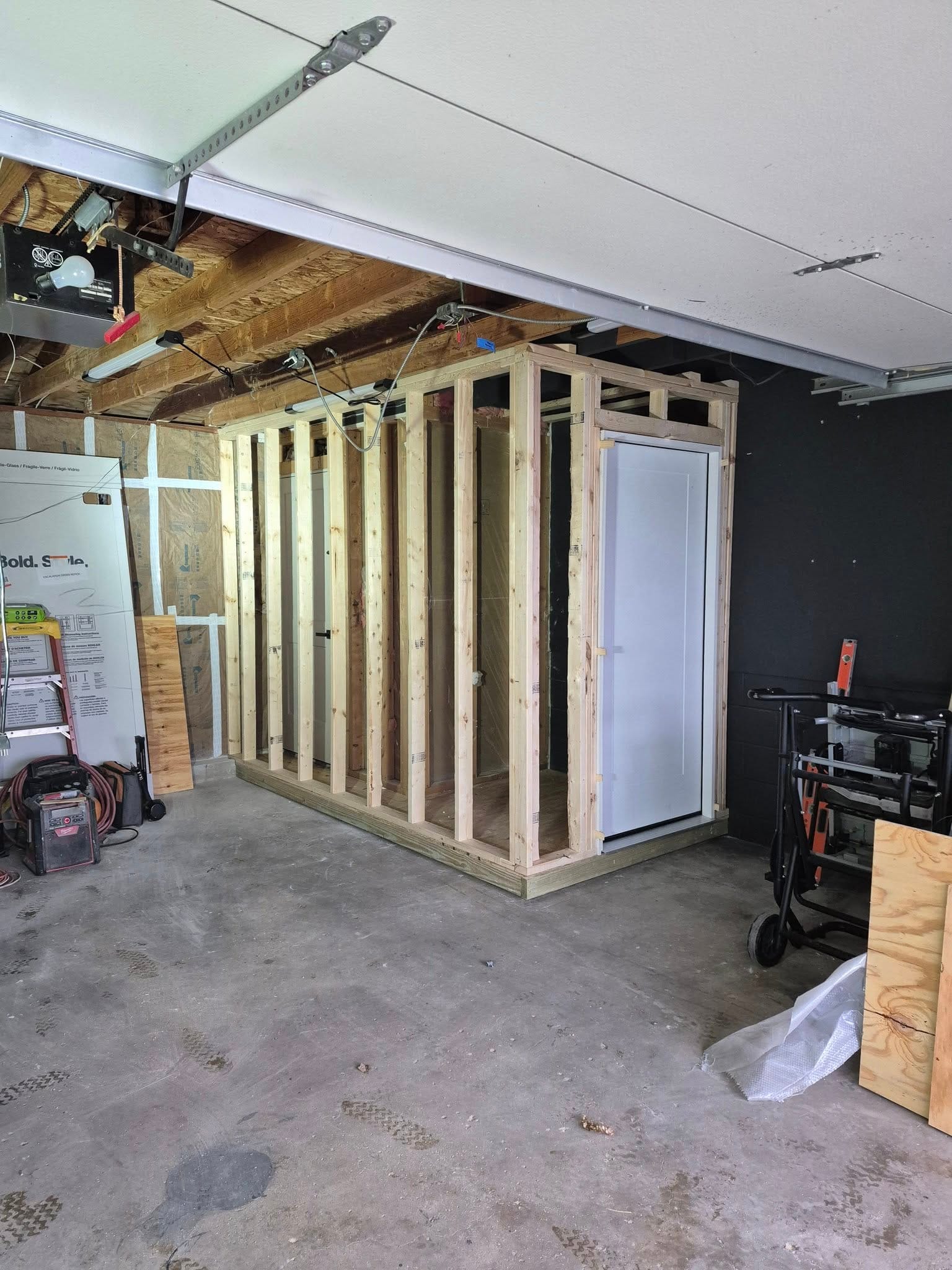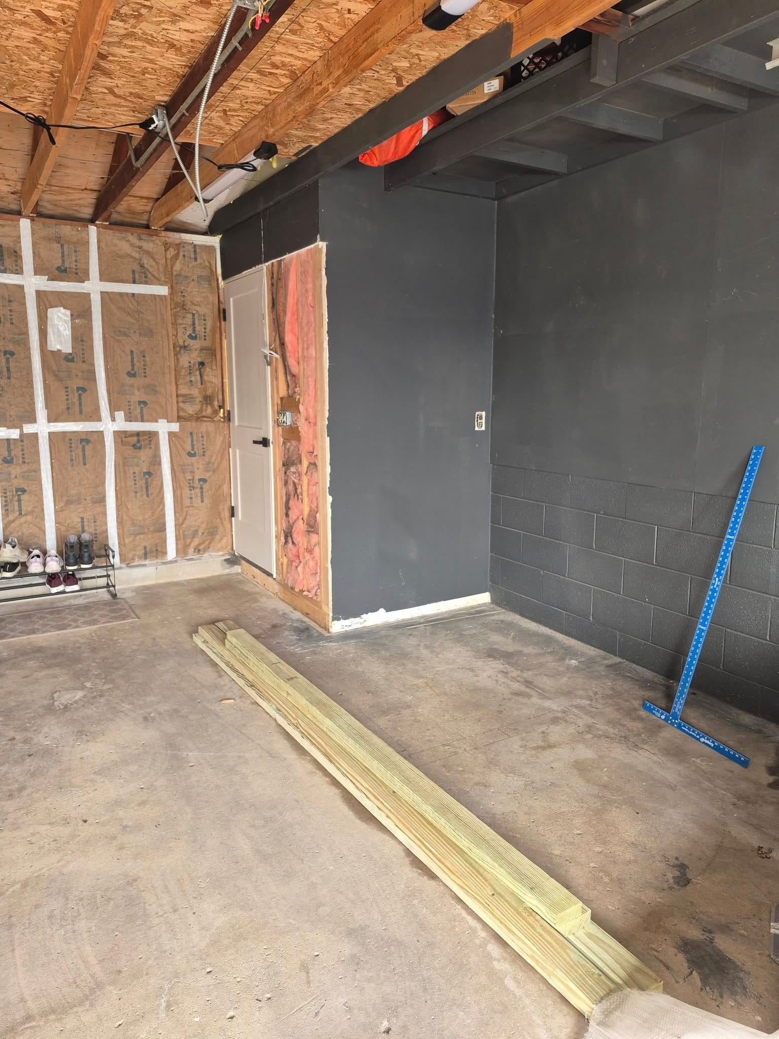 We're transforming a cramped closet and garage entry into a spacious and functional mudroom! While our clients enjoy a well-deserved vacation, we’re maximizing their space by relocating the door, framing new walls and floors, and updating the electrical. This project will open up a cramped hallway, creating a more inviting and practical entry point. Stay tuned for the finished result with flooring and trim!